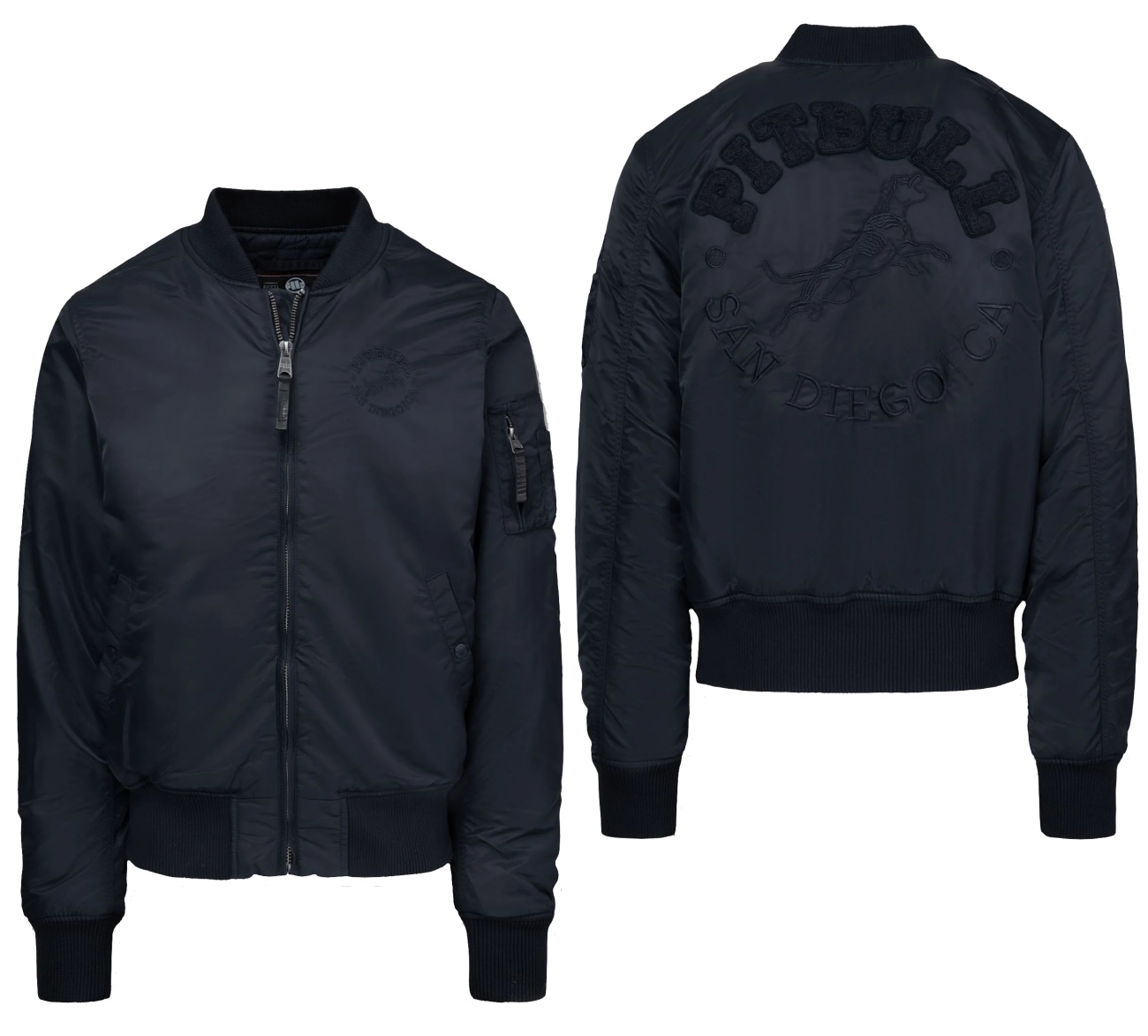 - große bestickte "PITBULL San Diego" Schrift auf dem Rücken und eine kleinere auf der Brust